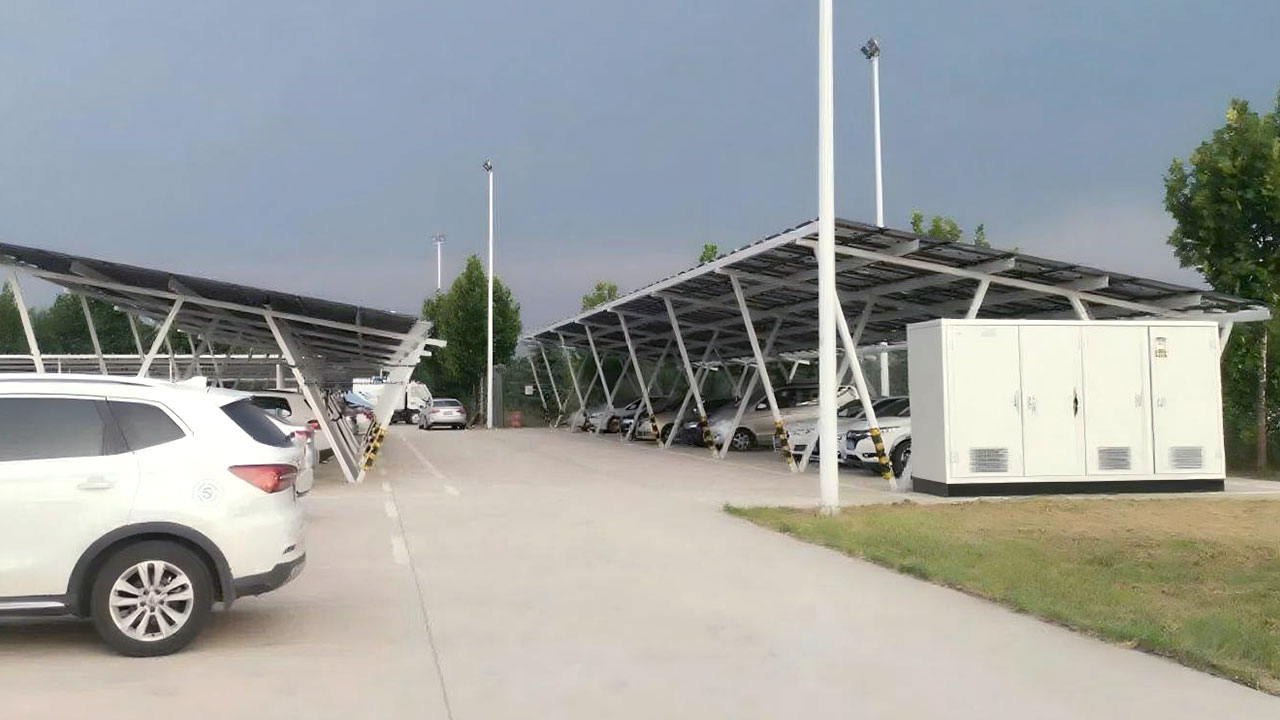 山东某机场光伏发电项目,2.3MW装机量,3兆瓦时储能设备;利用现有机库、车库等建筑物楼顶,充分发挥楼顶资源的再利用。此外,在货运站停车场建了680平方米、36个车位的光伏车棚,在光伏发电的同时,职工的车辆还避免了日晒雨淋。