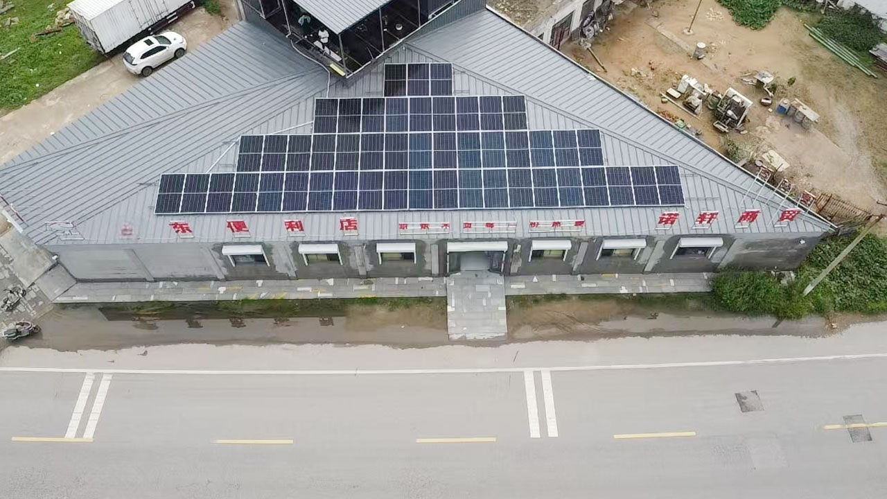 河北某地某东便利店,35kW光储项目,搭配100kWh储能系统,年发电量约4.6万度,覆盖冷藏柜、收银台等核心设备70%用电需求,年省电费大于2.8万元。遇停电时自动切换,确保冷链持续运行。光伏板安装于屋顶,年减碳约36吨,成为附近商业标杆。